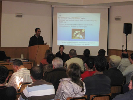 Kolloquium über artgerechte Tierhaltung im Tiermarkt von São João de Rates (bei Póvoa de Varzim, Nordportugal), unter Mitwirkung der Tierschutzorganisation "Animals' Angels", mit Julia Havenstein, Einsatzleiterin Spanien/Portugal. Nach mehreren Besuchen im Viehmarkt geht es den Tieren endlich ein wenig besser, aber es gibt noch sehr viel zu tun.